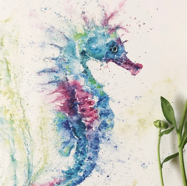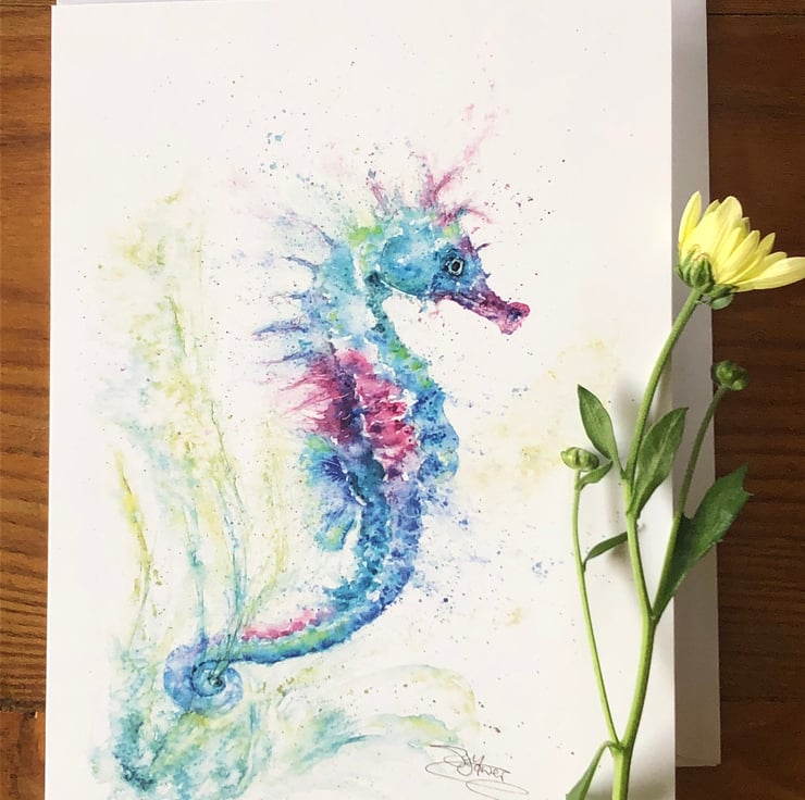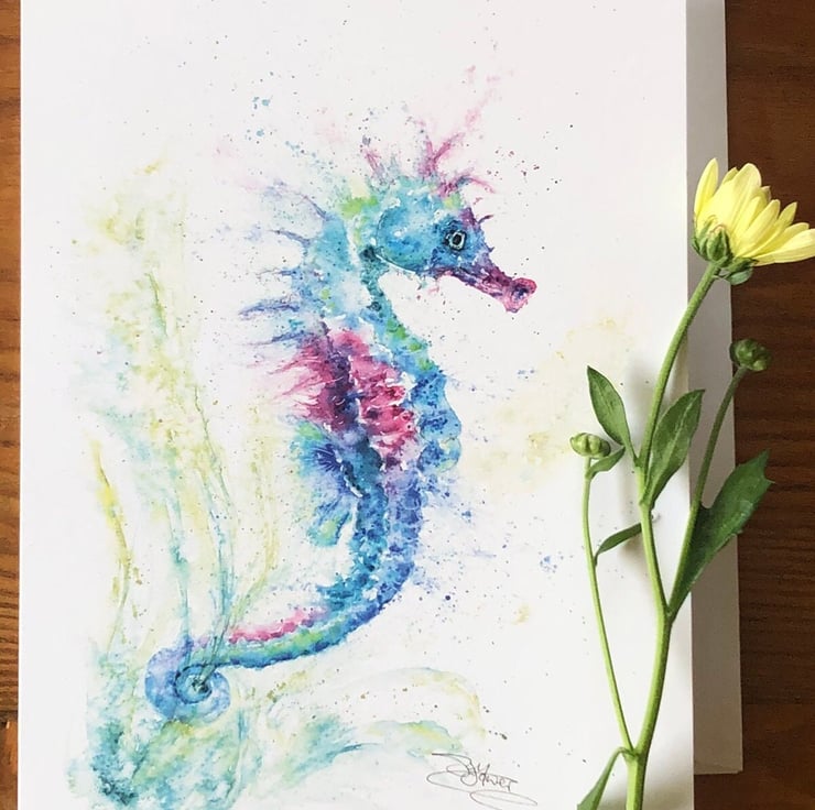 A lovely quality A5 greetings card with a stunning seahorse design from my original watercolour painting named 'Olivia's Seahorse'.
