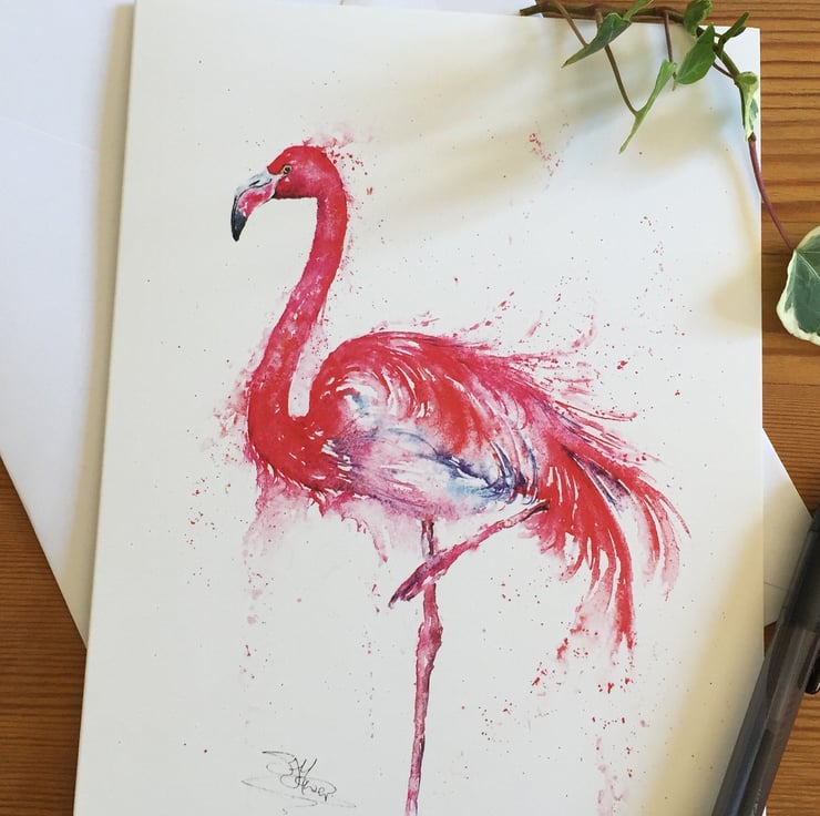 A lovely quality A5 greetings card with a stunning Pink Flamingo design from my original watercolour painting named 'Flamingo Fire'.