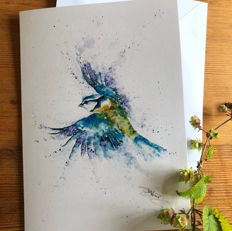 A lovely quality A5 greetings card with a stunning Bluetit design from my original watercolour painting named 'Bob'.