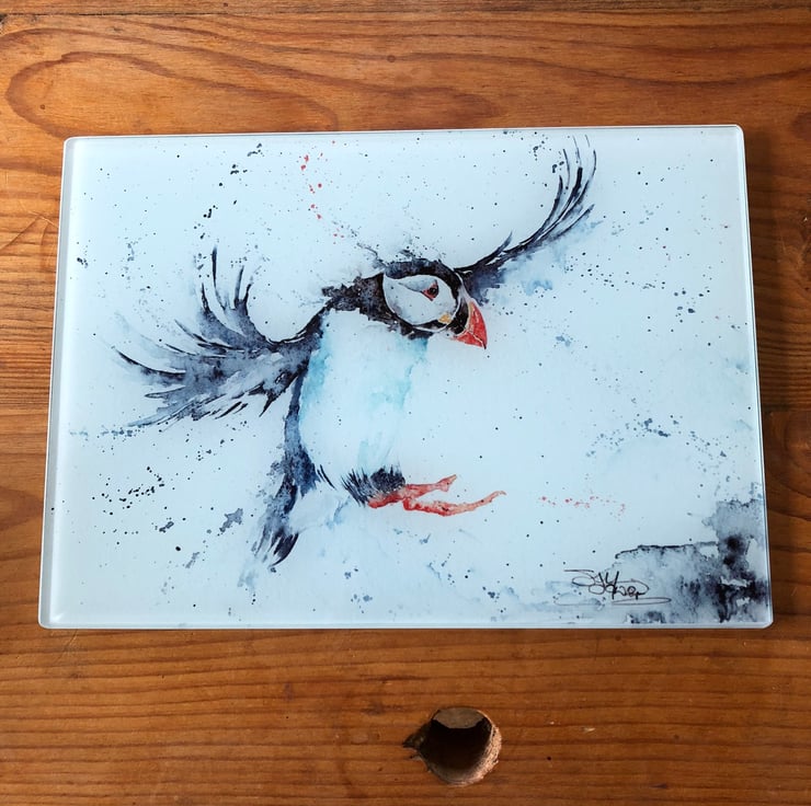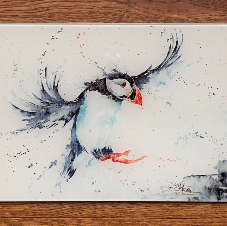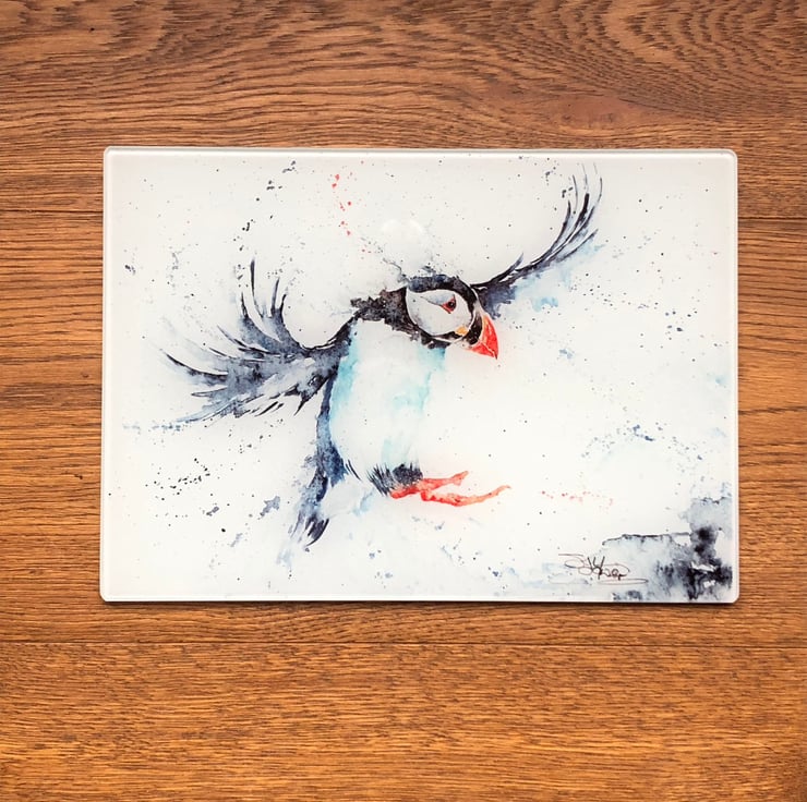 Puffin Glass Placemat, Wildlife Design Table Mat, Glass Trivet, Hot Plate, Water