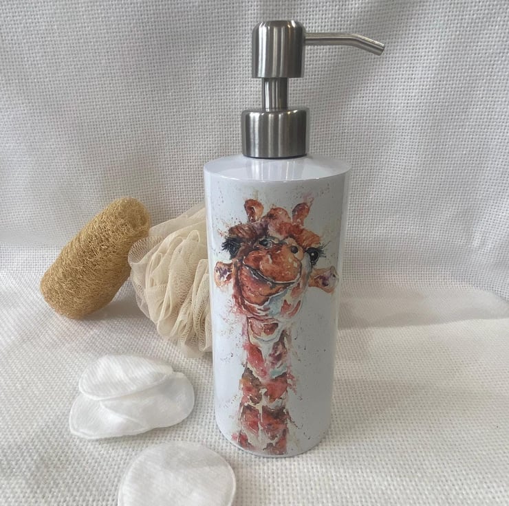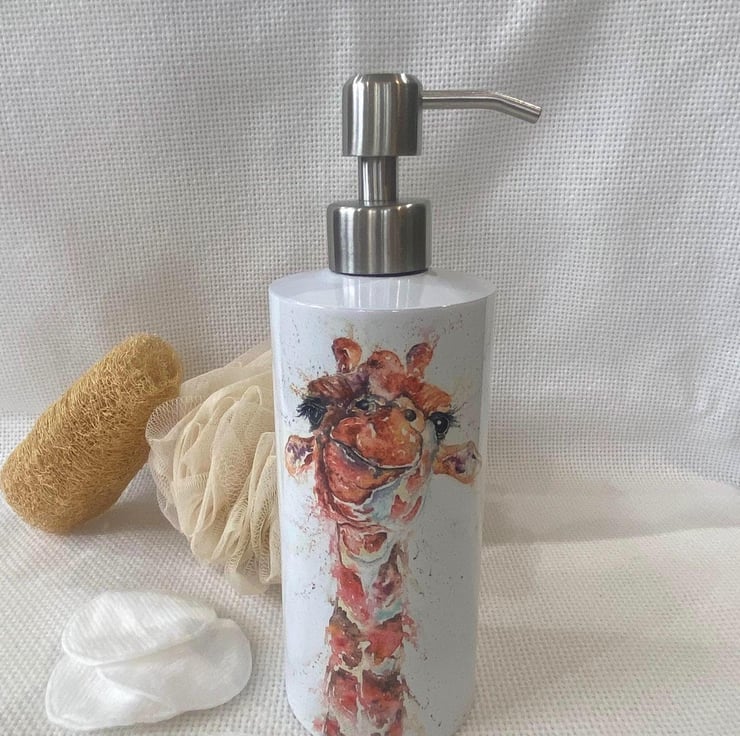 Giraffe Watercolour Design, Liquid Soap Pump Dispenser, by Wildlife Artist Sandi