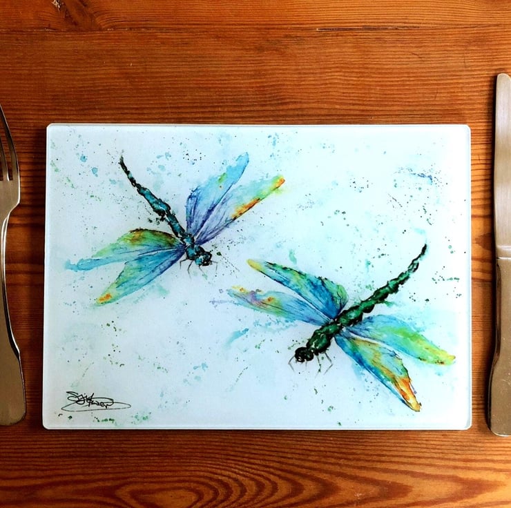 Dragonfly Glass Placemat, Wildlife Design Table Mat, Glass Trivet, Hot Plate, Wa