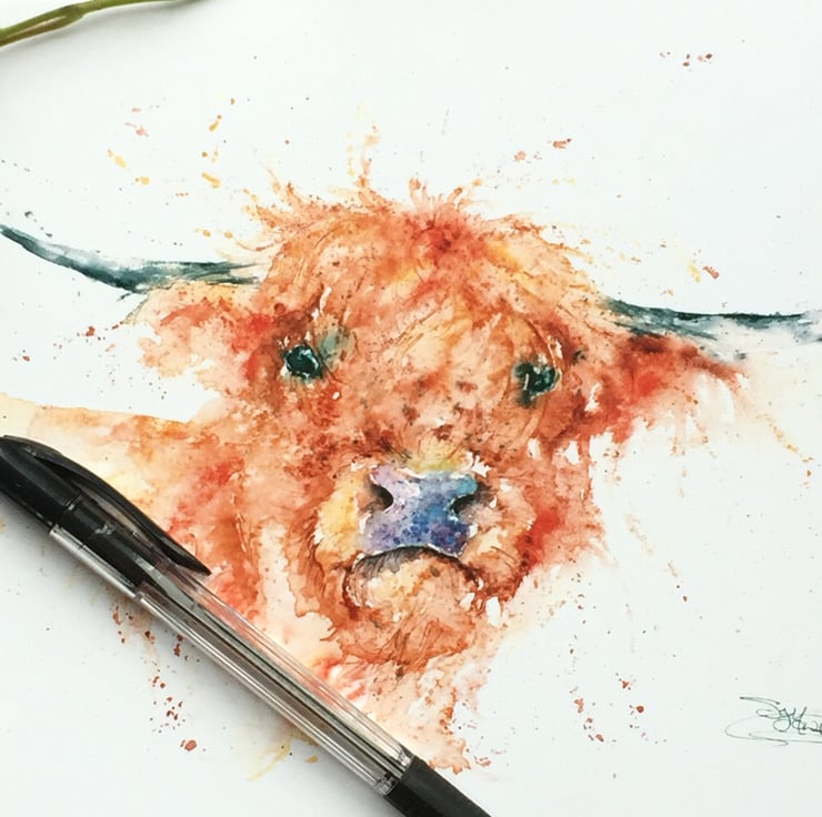 A lovely quality A5 greetings card with a stunning Highland Cow design from my original watercolour painting named 'Angus'.