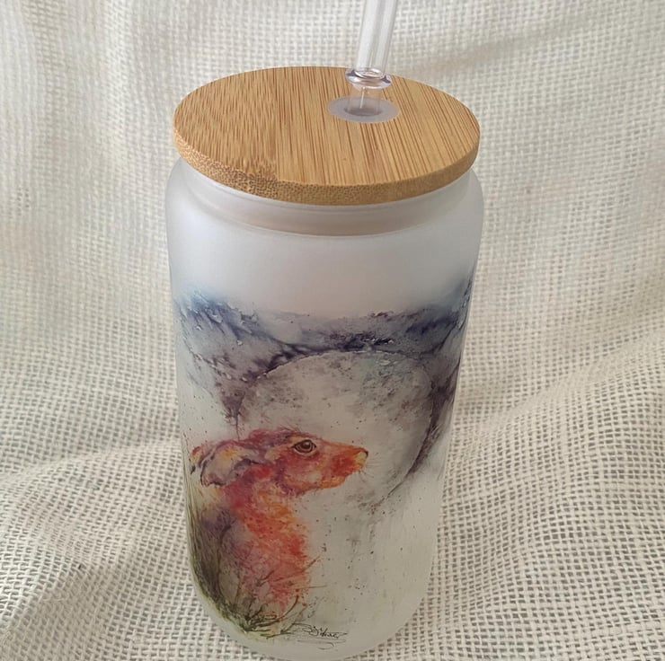 Moon Gazing Hare Frosted Glass Tumbler with Bamboo Lid & Straw, 500ml