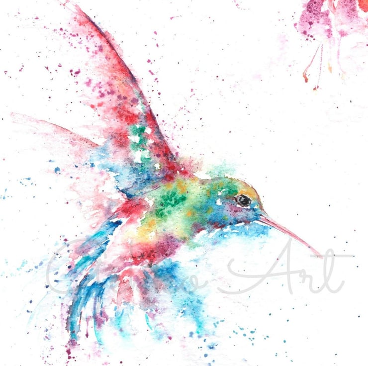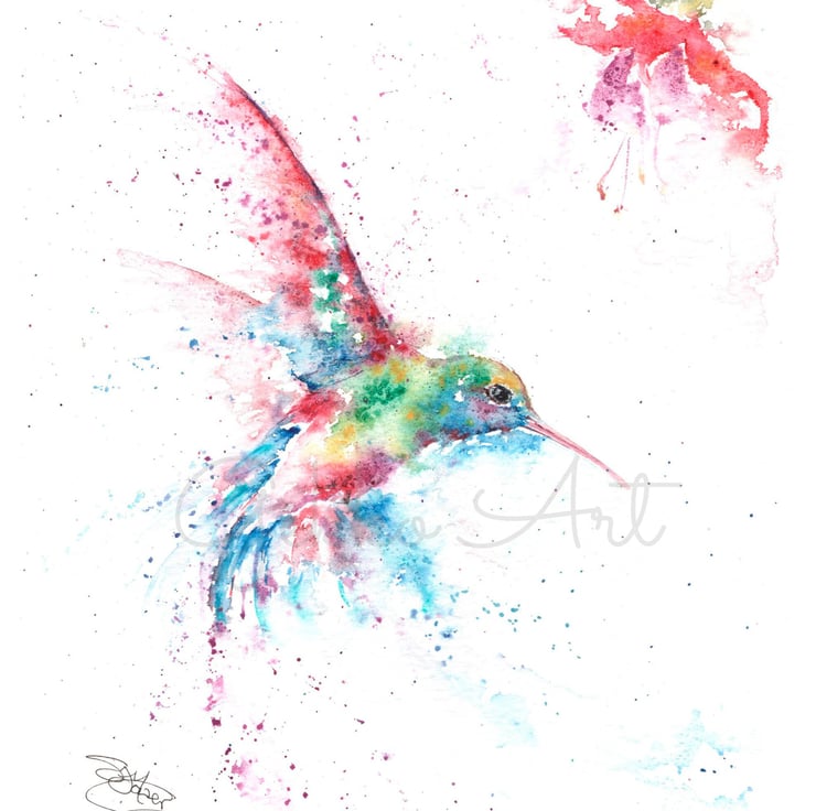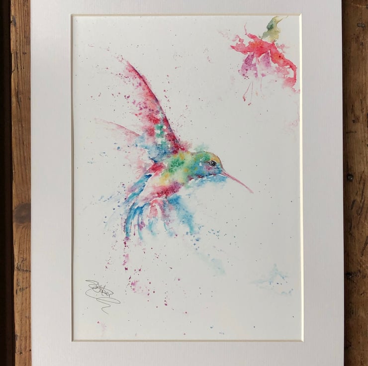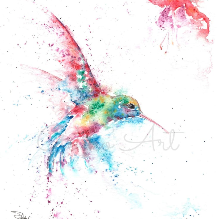 This is an archival quality fine art print from my original watercolour painting of a Hummingbird with flowers named 'Hummingbird Jewels No.2'.