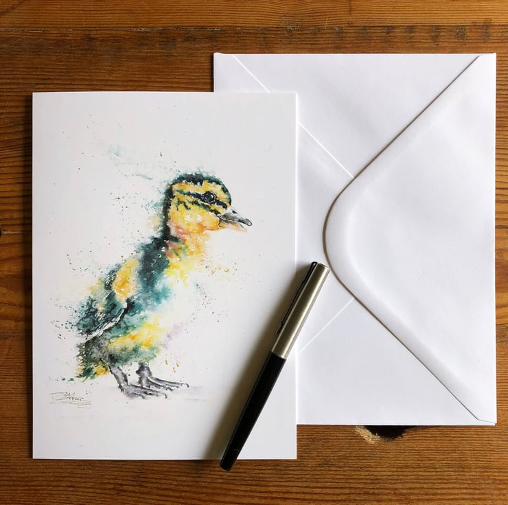 A lovely quality A5 greetings card with a cute duckling design from my original watercolour painting named 'Quackers'.