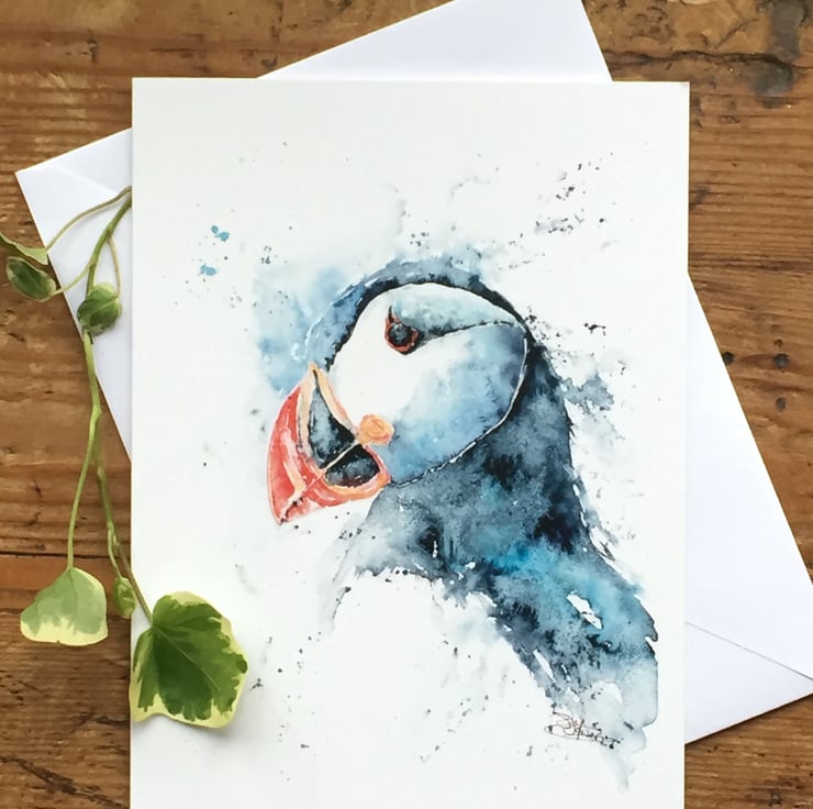 A lovely quality A5 greetings card with a stunning Puffin Portrait design from my original watercolour painting named 'Percy'.