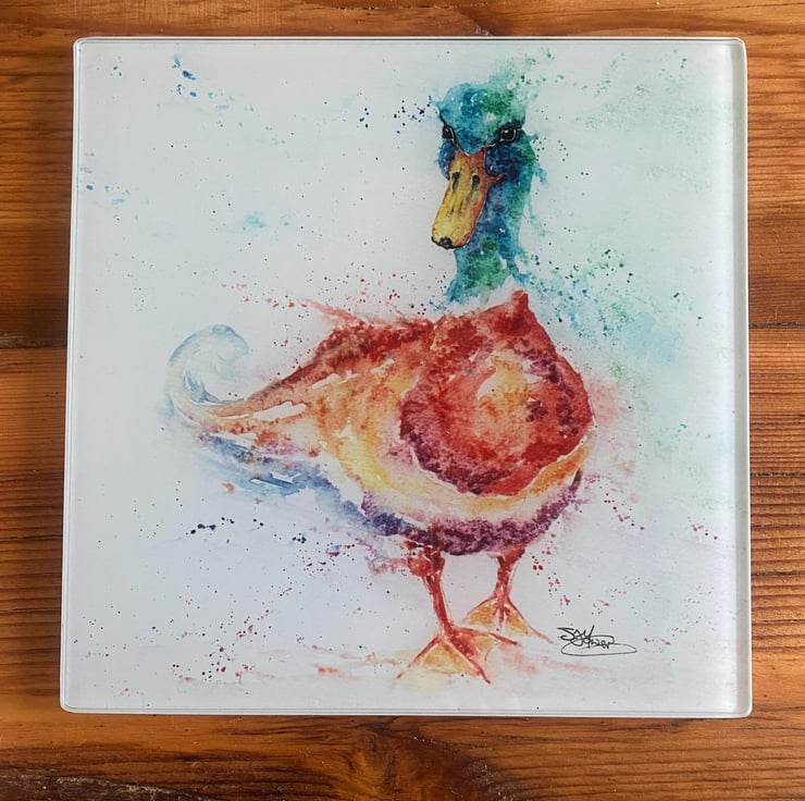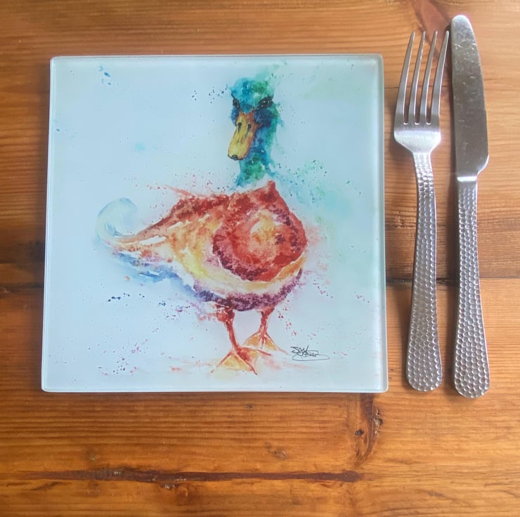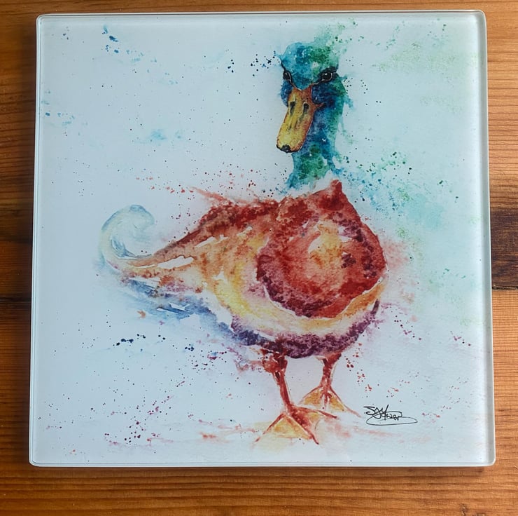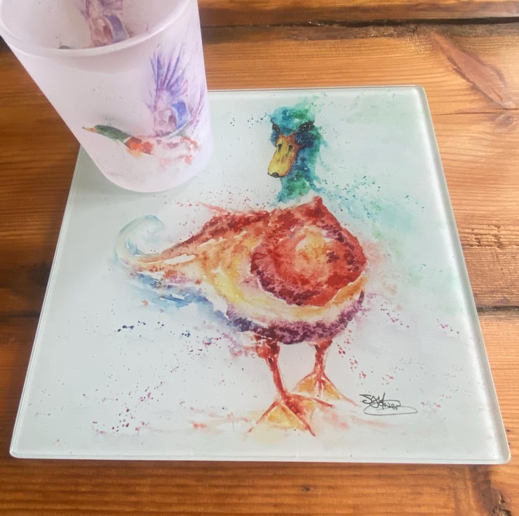 A small glass table mat with a smooth surface and beautiful watercolour art from my original watercolour paintings.