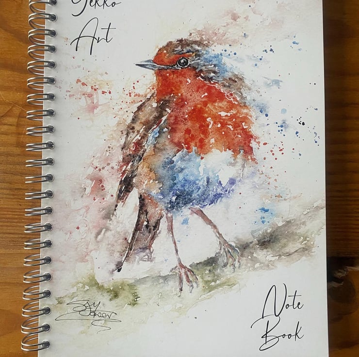 A lovely quality A5 notebook with a spiral binding and protective clear plastic front & back cover with a stunning Robin design from my original watercolour painting named 'Grandad's Messenger'.