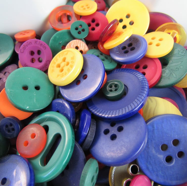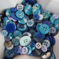 50g of mixed buttons - all sizes, all shades of blue, red, orange, green and yellow.