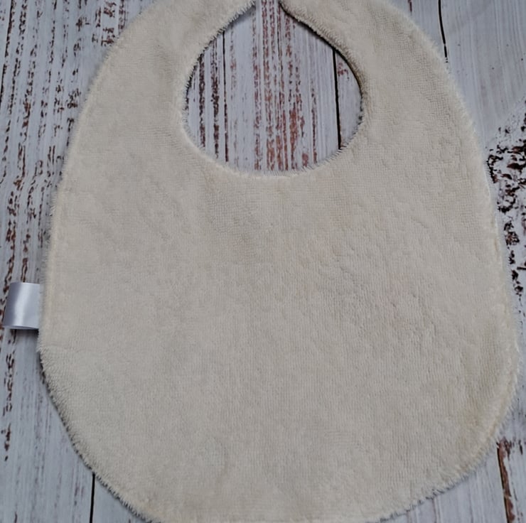 This cute toddler bib is backed with softest bamboo towelling. Absorbent and gentle on skin, these fabrics make a great combination for babies.