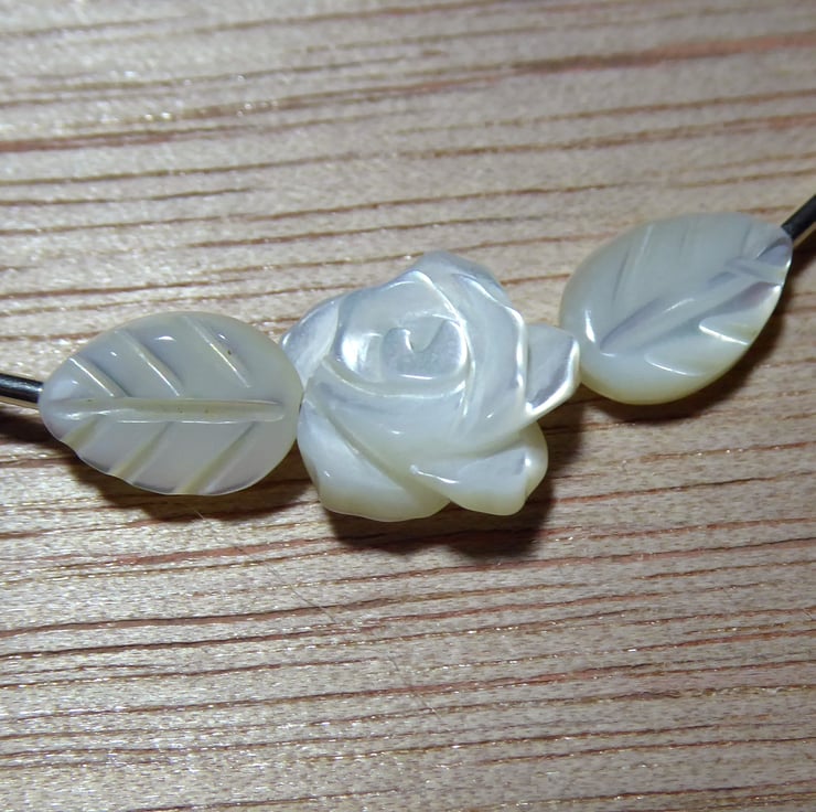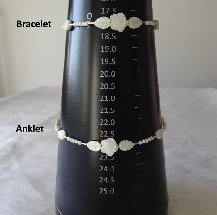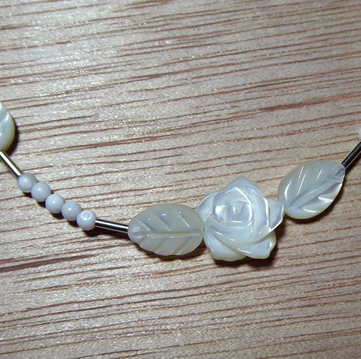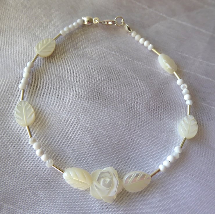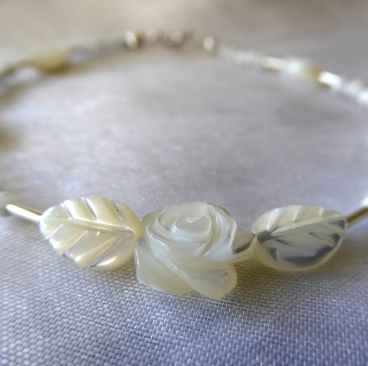 Sterling Silver & Mother of Pearl Leaves & Rose Bracelet