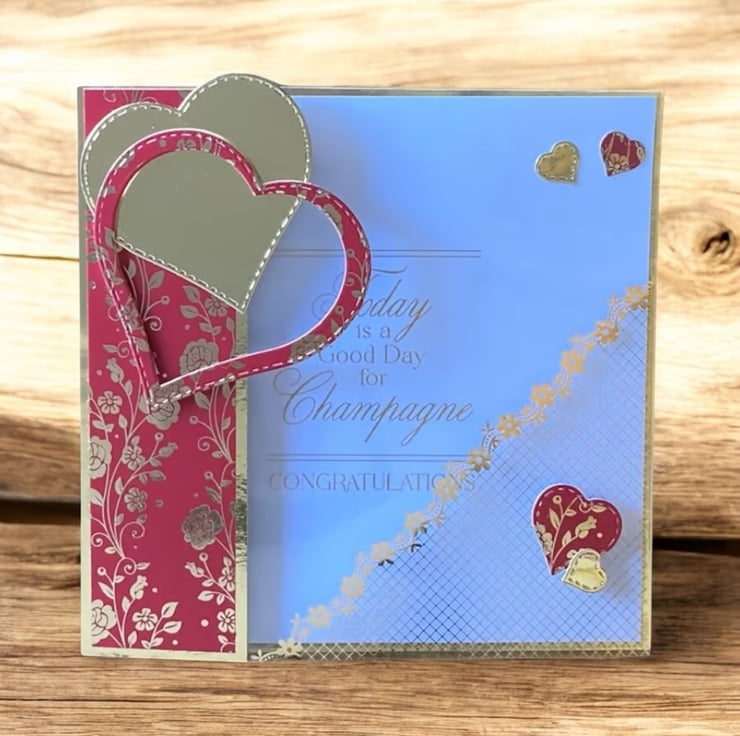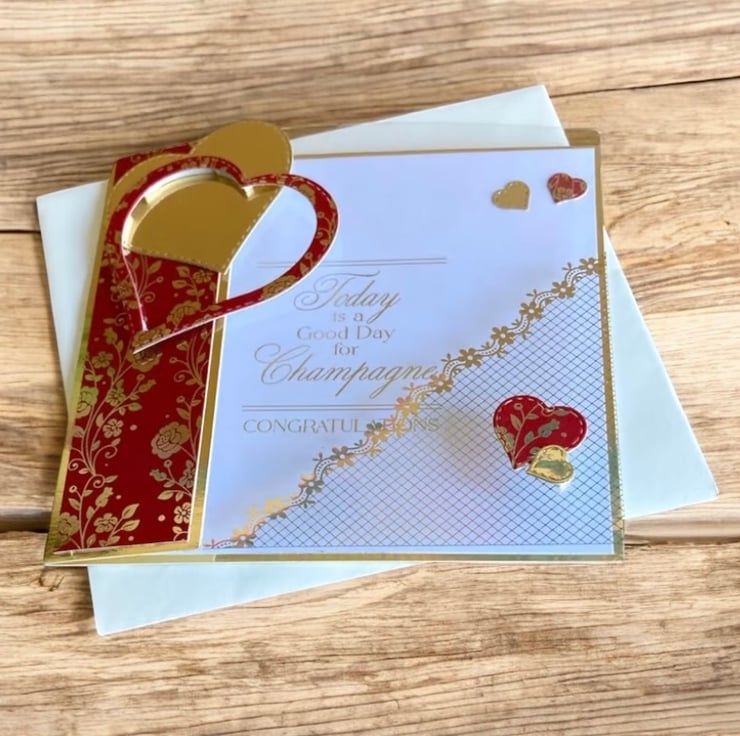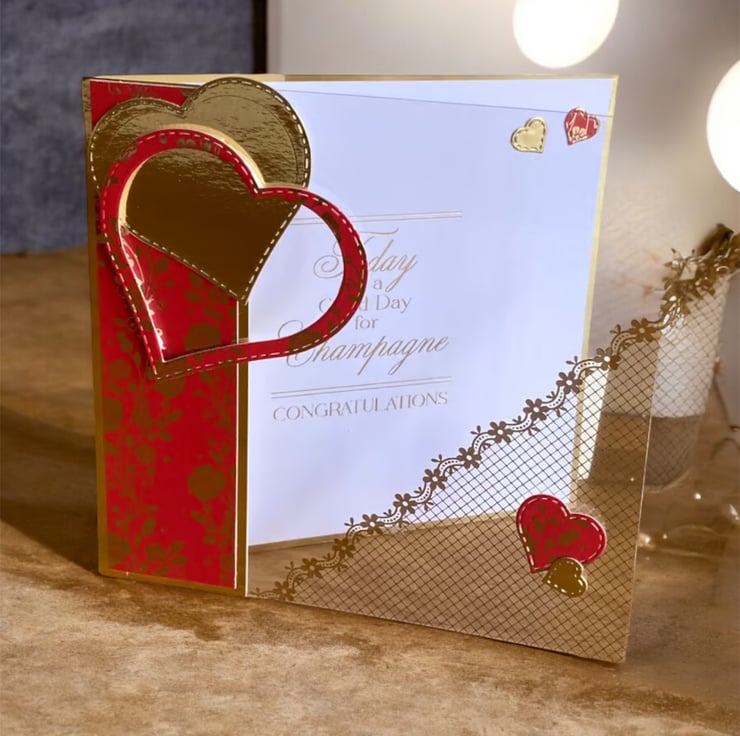 Featuring the message “Today is a good day for Champagne – Congratulations,” this design is just right for celebrating a beautiful Ruby wedding anniversary. Forty years of love, laughter, and life together deserves more than an ordinary card — this is a keepsake they can treasure right along with the memories.