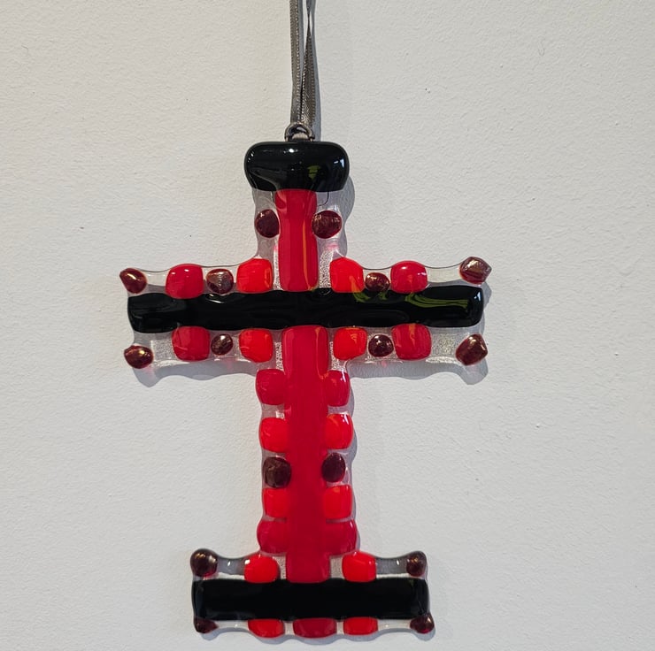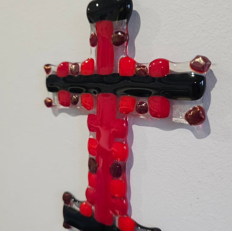 Fused Glass - Medium cross - Red and Black