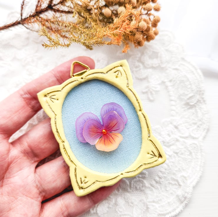 This miniature framed floral artwork is entirely handcrafted.