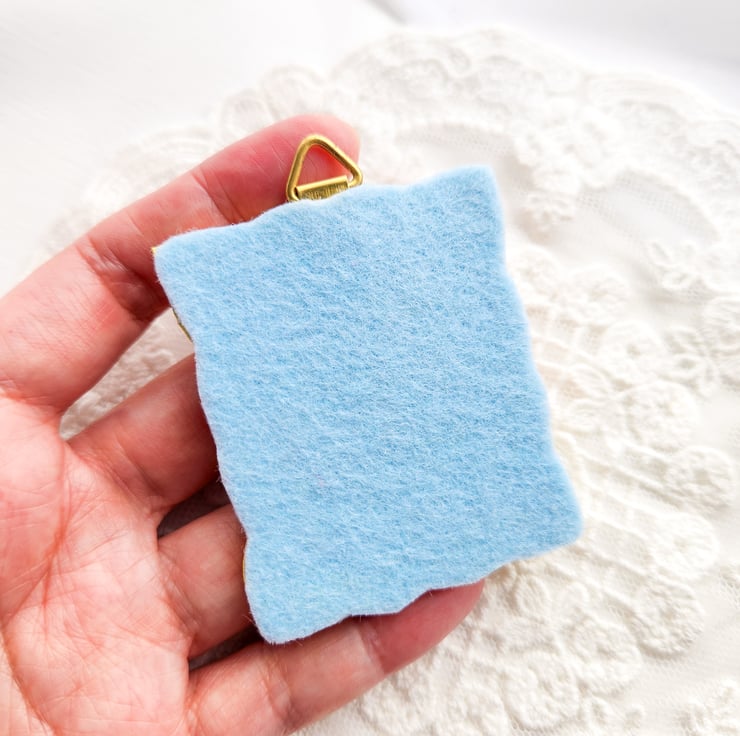 The frame is sculpted from clay and carefully hand-painted, inspired by the charm of classical miniature frames.