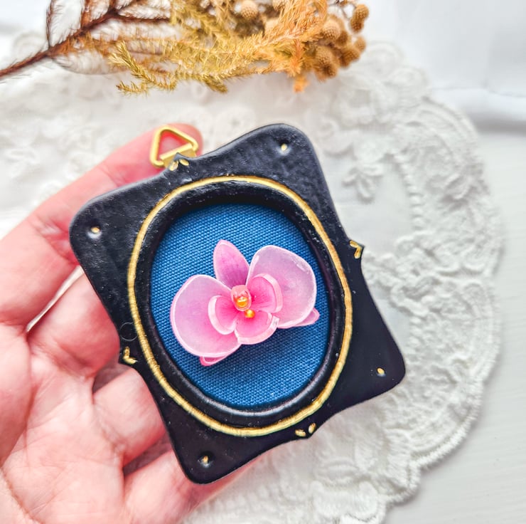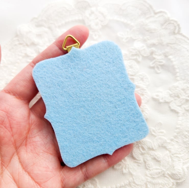 The frame is sculpted from clay and carefully hand-painted, inspired by the charm of classical miniature frames.