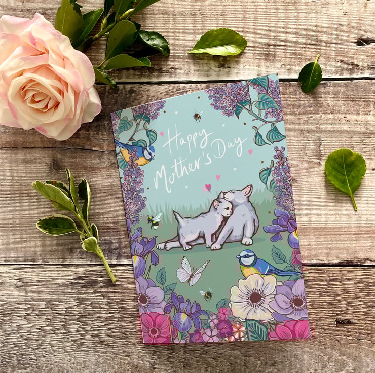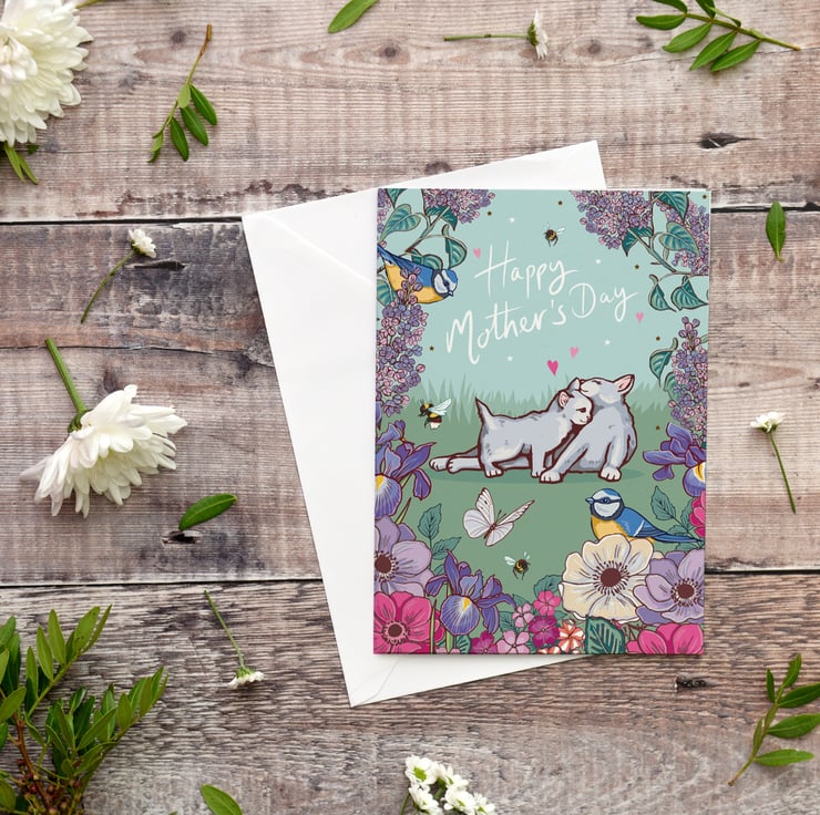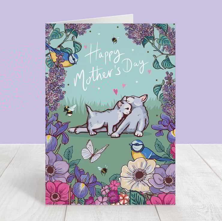 Happy Mother's Day Card, featuring a cute cat and kitten