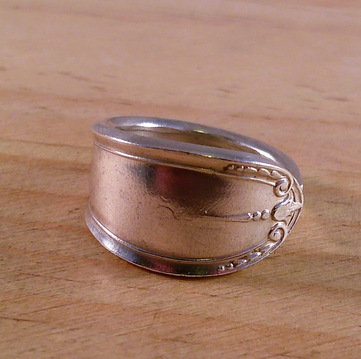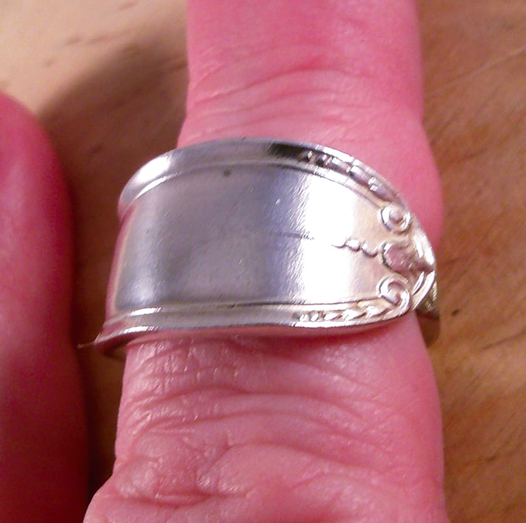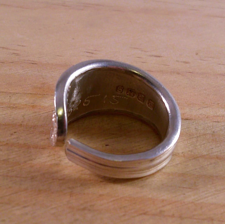 An unusual yet simple ring hand made from an old silver plated teaspoon.
