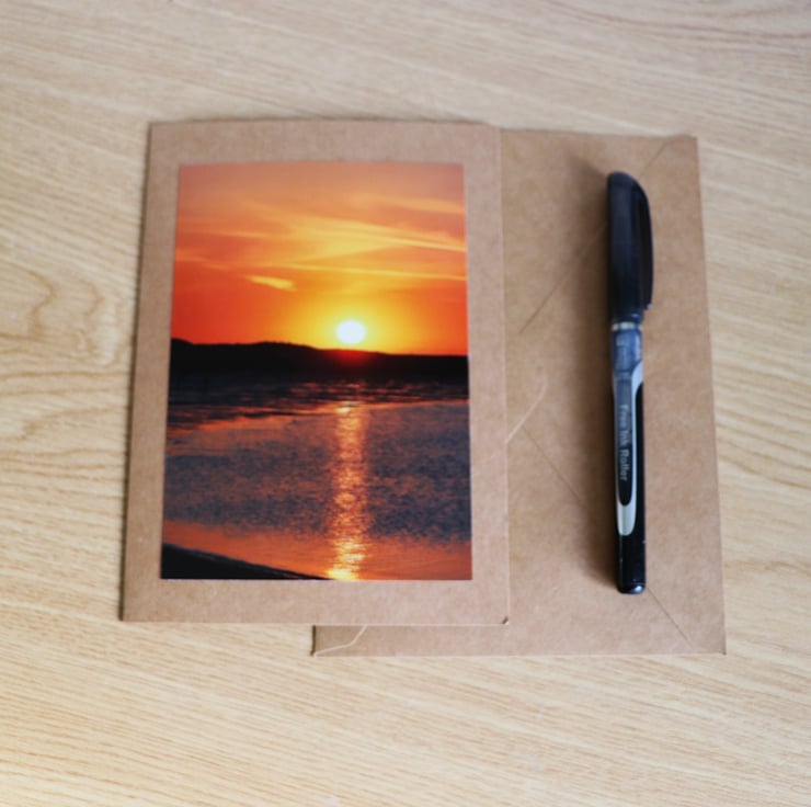 Inspired by the natural beauty and calmness of this beautiful coastal sunset image taken at Wells-next-Sea during the high tide. Printed on high-quality 7 x5 Kraft card , blank inside for your own message. Perfect for birthdays, thank-yous, or seasonal notes, or can be framed for gift or small piece of art work. Comes with a Kraft envelope.
