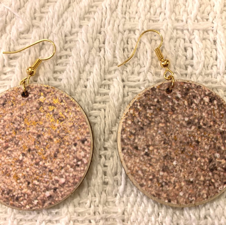1 x Pair of Wooden Earrings Bricks and Mortar Sand Building Materials Double Sided Hooks.