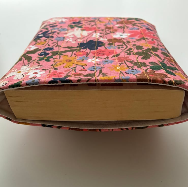 The quilted book sleeve is padded to protect your book.