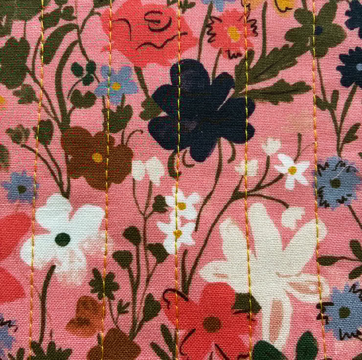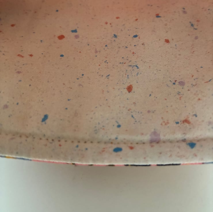 The sleeve is quilted with gold colour thread and is fully lined with a confetti design on a cream background fabric.