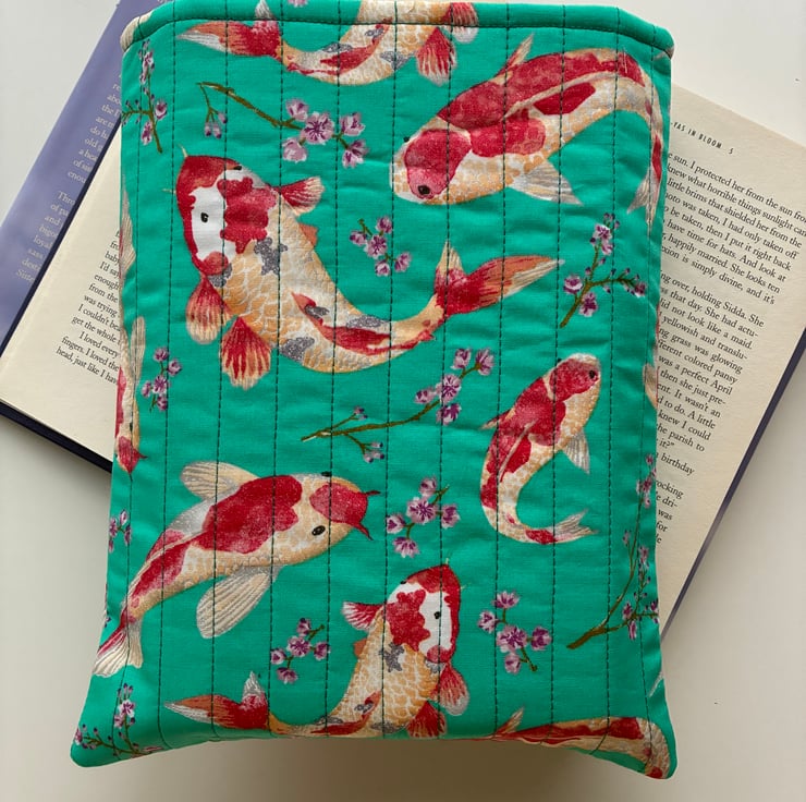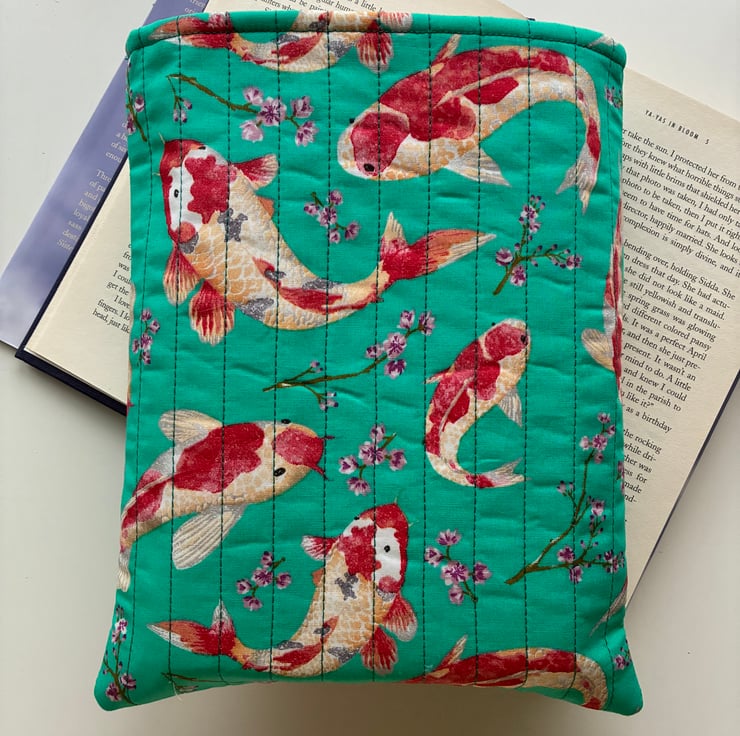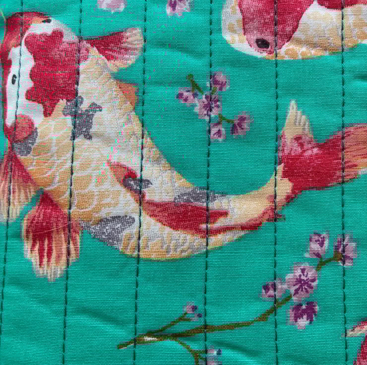 It is made with this beautiful koi and cherry blossom print on a jade colour background.