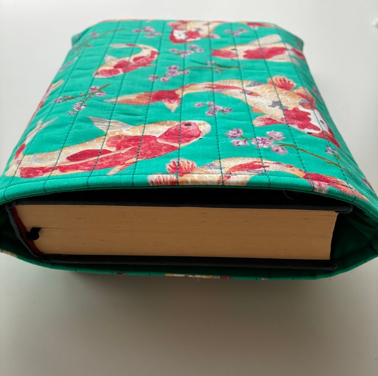 The quilted book sleeve is padded to protect your book.