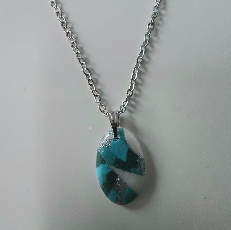 Handmade necklace. Made with love and care and presented on a neckalce card in an organza bag ready to have as a gift for yourself or for someone else. Oval measures 1 x 1.8 cm and comes on a 17inch chain