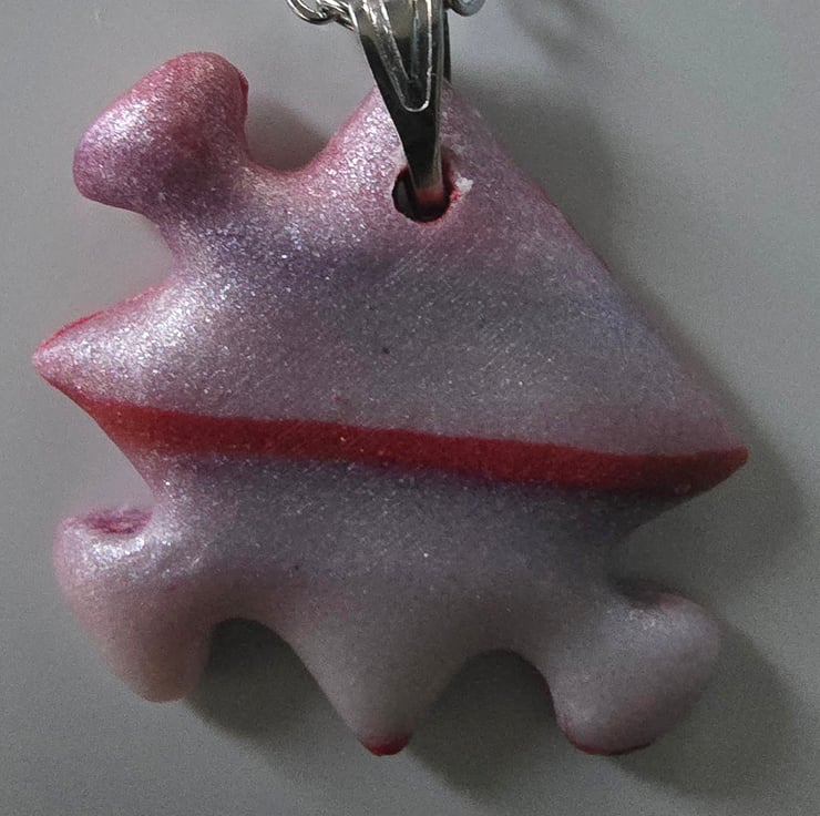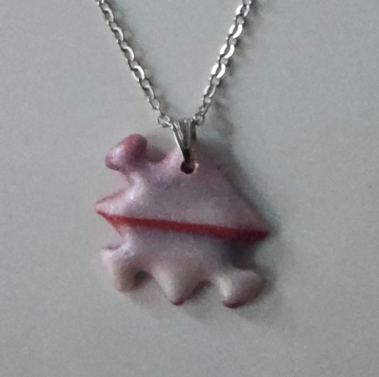 Handmade jigsaw piece necklace. Made with love and care and presented on a neckalce card in an organza bag ready to have as a gift for yourself or for someone else. Jigdaw measures 2.4 x 1.8 cm and comes on a 17inch chain
