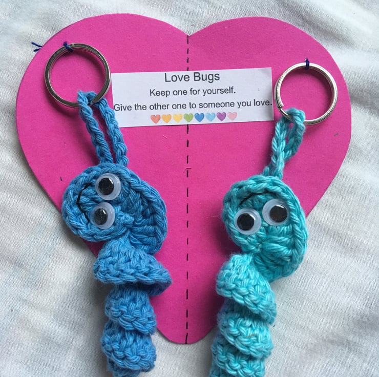 Crochet love bug keyrings.