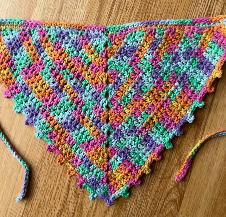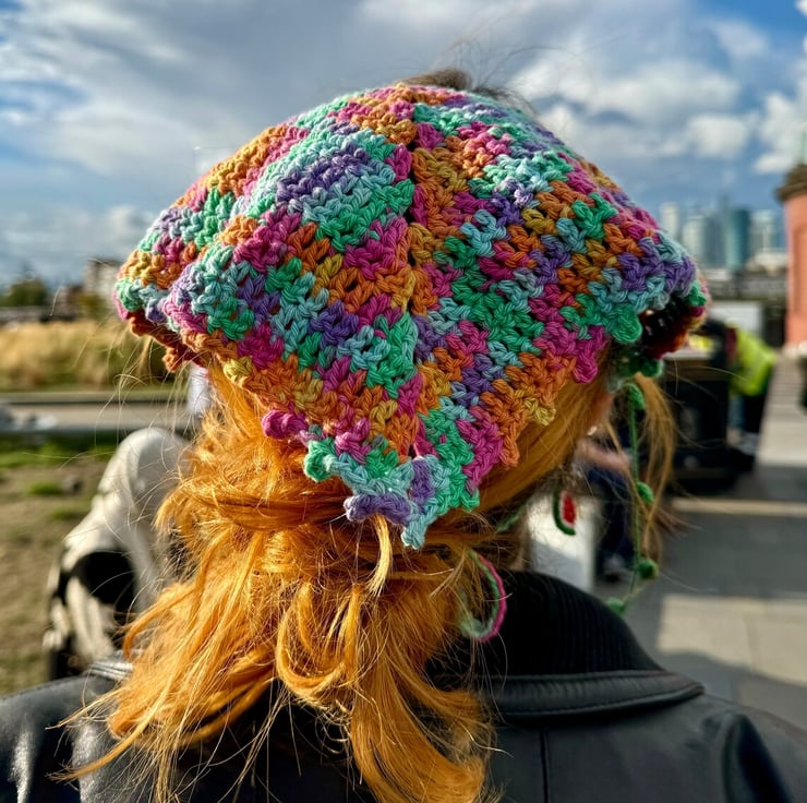 This beautiful bandana makes the perfect addition to any outfit, with its kaleidoscope of soft rainbow colours and finished with a pretty picot border to add that extra touch! Made with cotton yarn to keep the bandana cool and breathable, even in the height of summer, but can also keep your head warm in autumn and winter. These bandanas are crocheted, handmade and assembled with love by me.