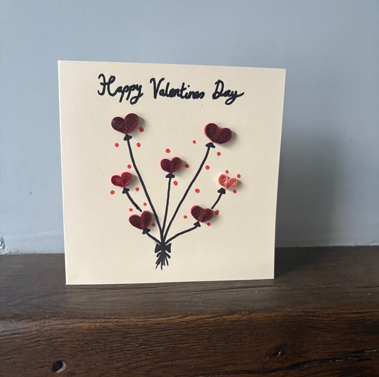 These beautiful Valentine's Day cards are perfect for that special person in your life! Made with premium cream card and coloured strips quilled into a love heart design. Each card is C6 sized (162 x 229 millimeters, or 6.4 x 9 inches)