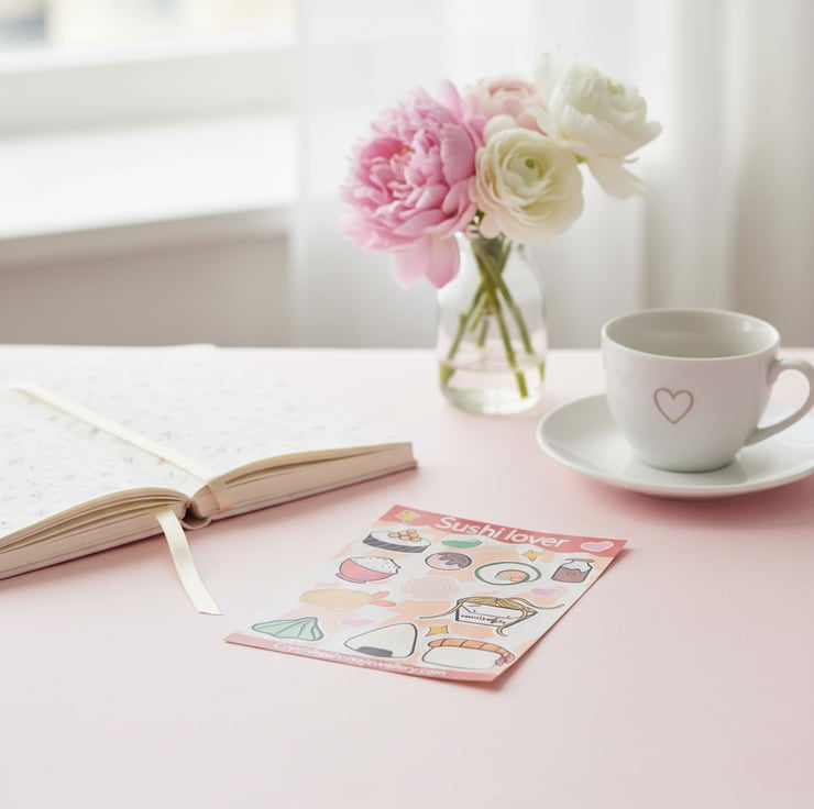 Bring a little smile to your planners, journals, and crafty odds and ends with this sweet sushi sticker sheet.