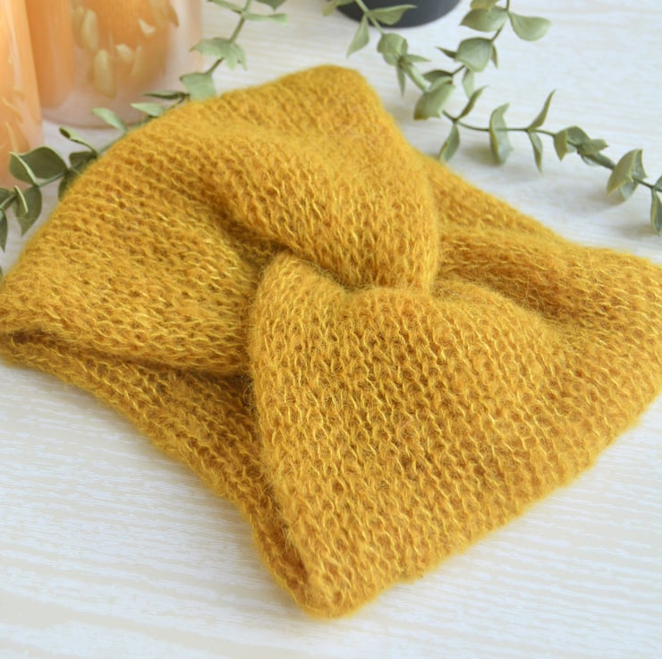 Knitted Headband Earwarmer Soft Alpaca Silk Spicy Curry Yellow Letterbox Gift