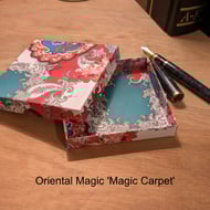 The box is complete and ready to use, requiring no further assembly, and the paper completely covers the exterior and interior of both the lid and the base with no cardboard showing. It measures 10.6cm square closed. Outside height is 1.7cm and internal box depth is 1.5cm. Ideal for all items not requiring a deep box, such as delicate jewellery pieces, silk scarves, embroidered handkerchiefs, etc.