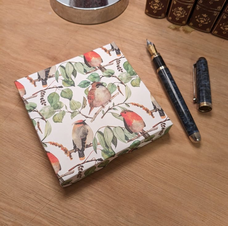 An ultra-thin, handmade gift box with separate lid, part of the Garden Beauty range featuring a delightful image of Robins and their feathered friends.