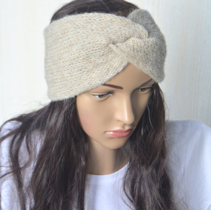 Knitted Headband Earwarmer Soft Alpaca Silk Wheat Sheaf Beige Letterbox Gift