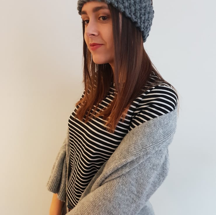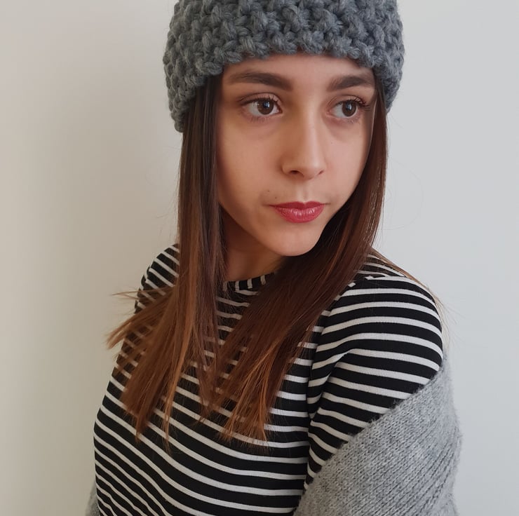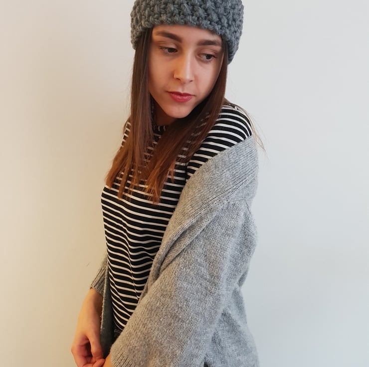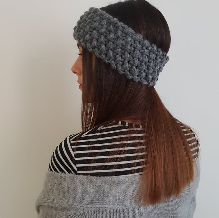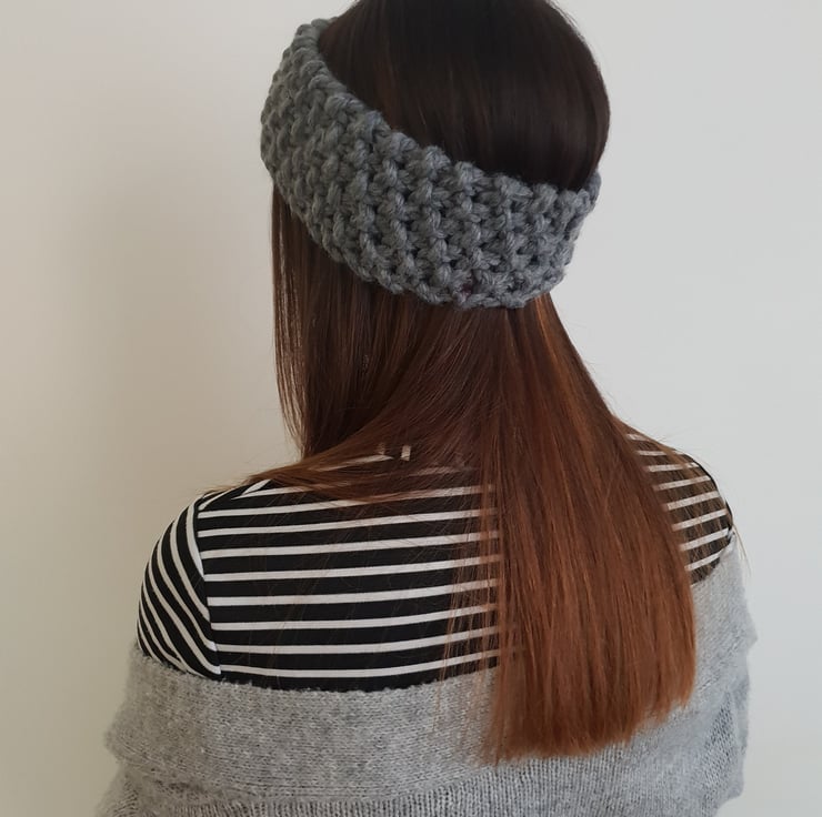 Women's Chunky Knit Soft Acrylic Grey Handmade Stretch Ear Warmer For Sale.
