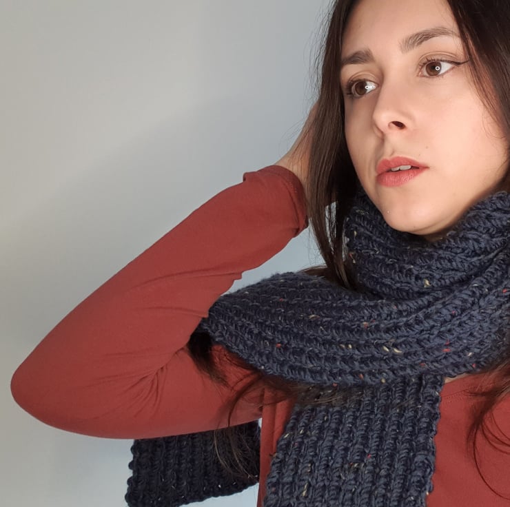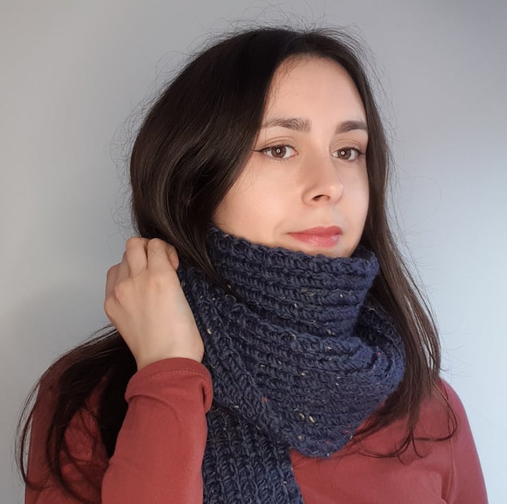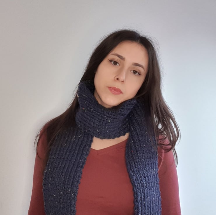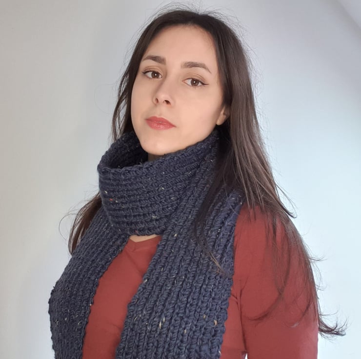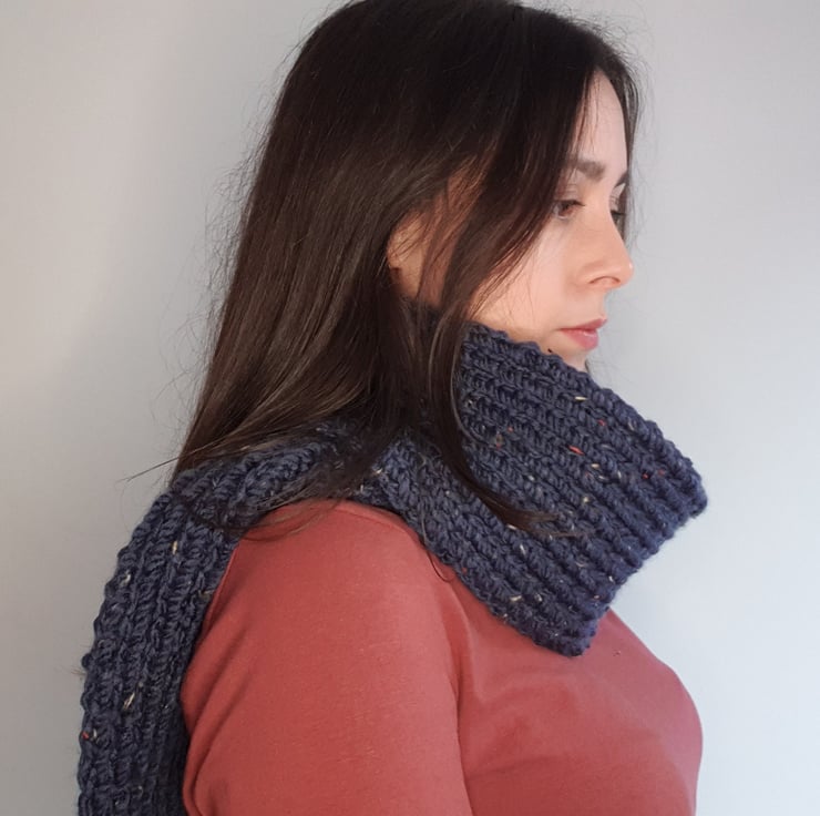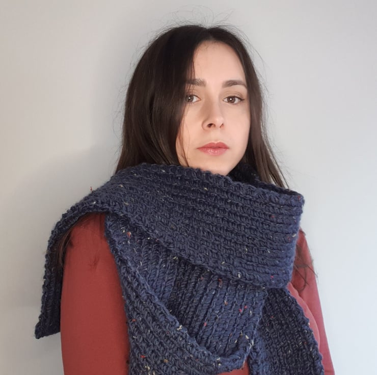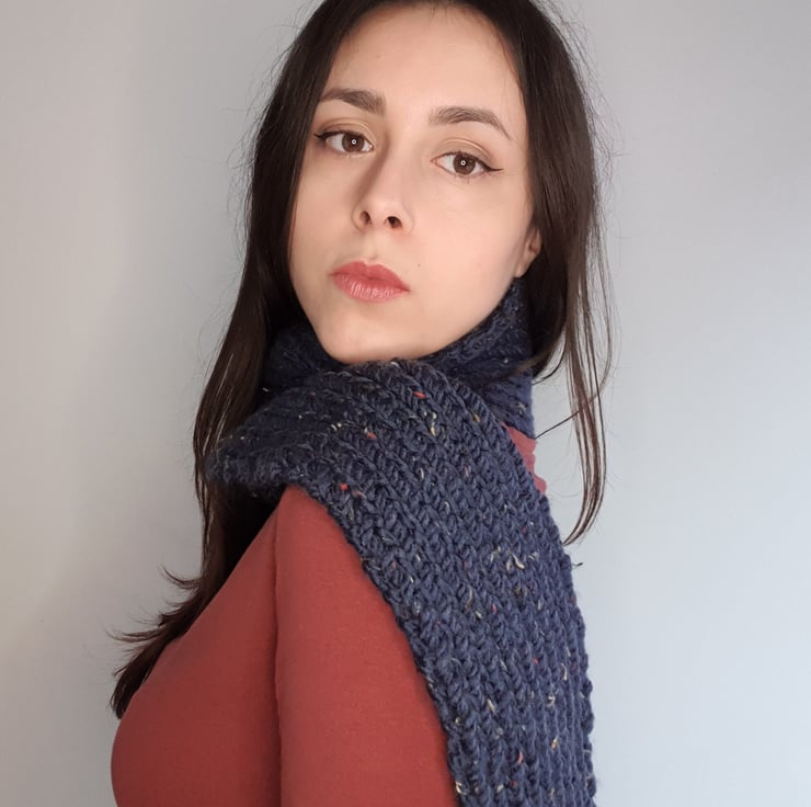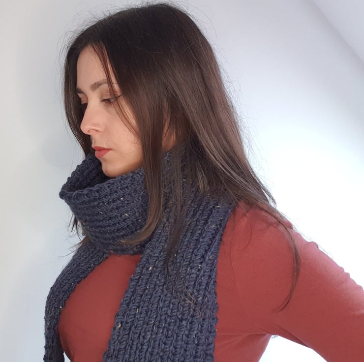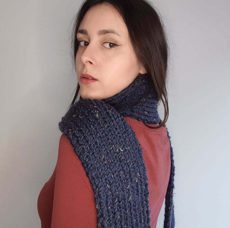 Unisex Dark Blue Neutral Speckled Chunky Acrylic Knit Extra Soft Minimalist Scar