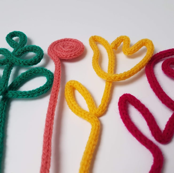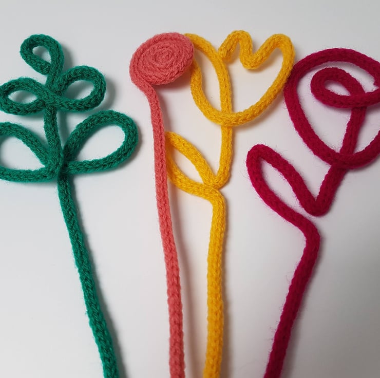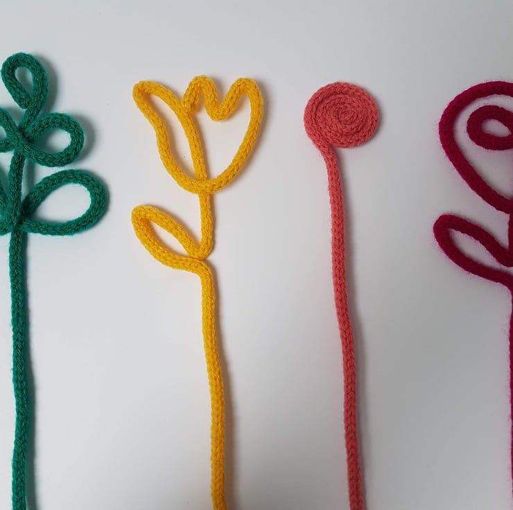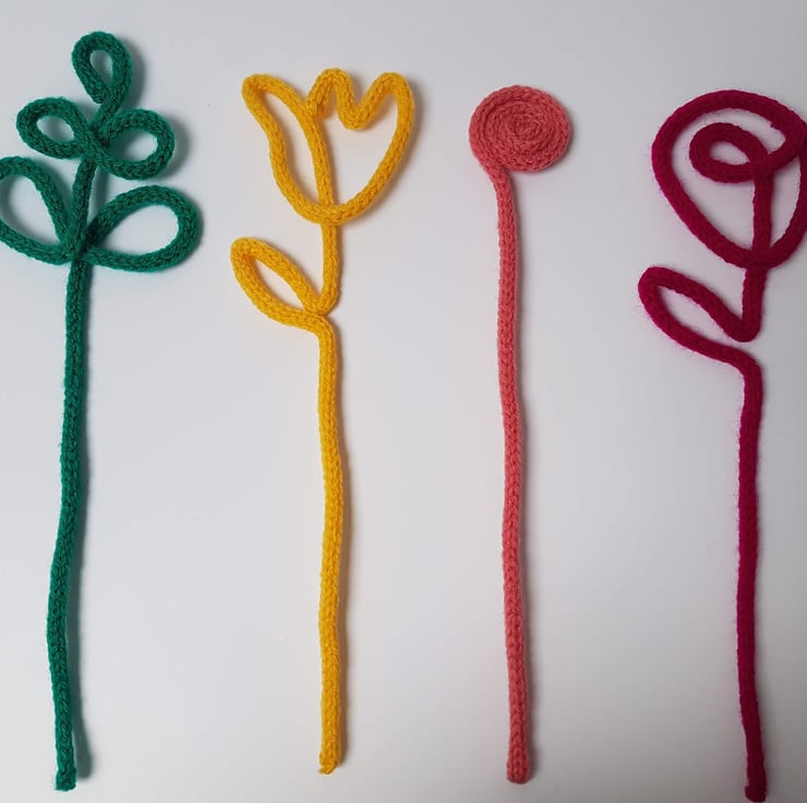Handmade Knitted Spring Flowers: Multi-Coloured Wire Floral Home Decor, Set of 4