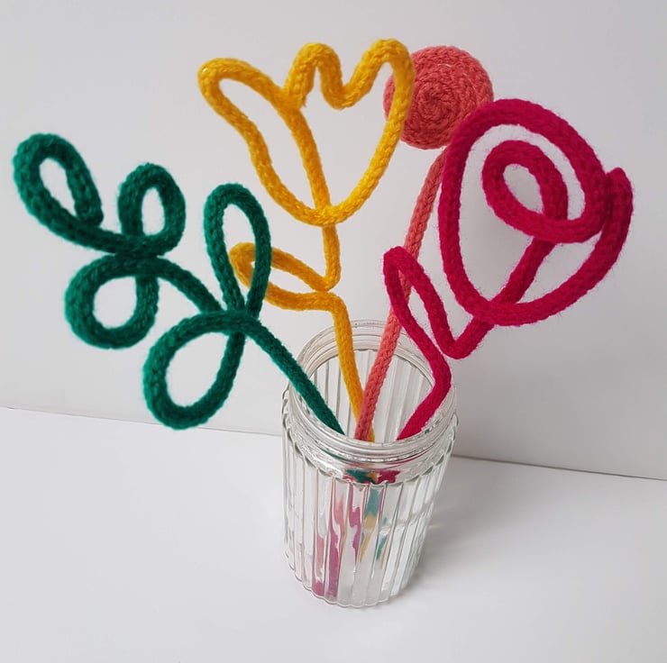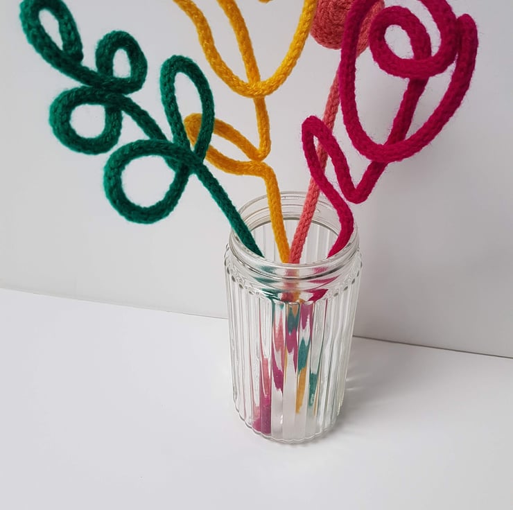 Lovingly handmade out of brightly coloured acrylic yarn and silver wire, these decorative bunch of spring flowers will add a burst of colour to brighten up any home.