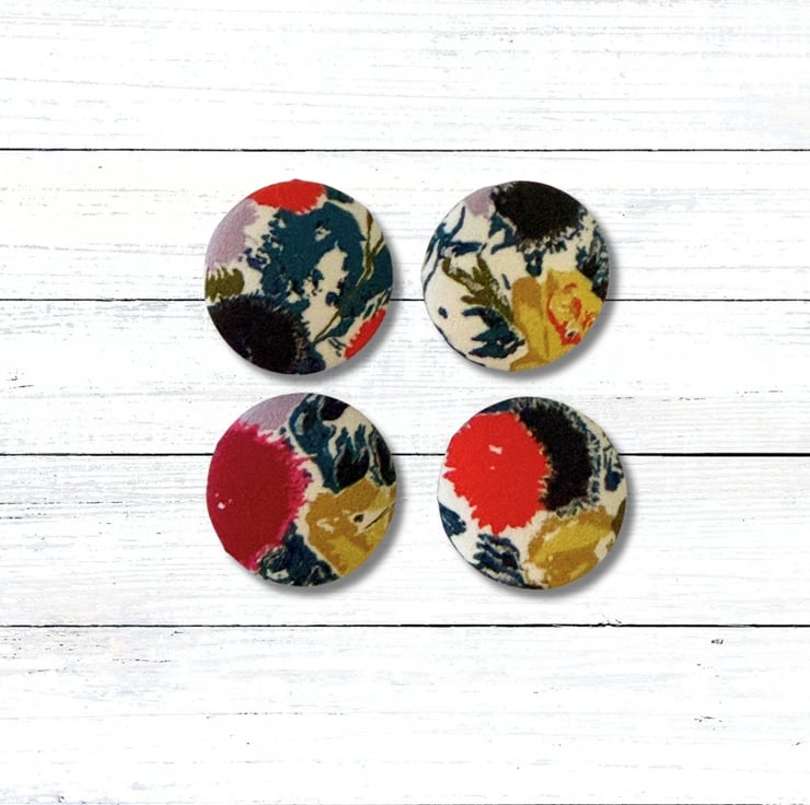Handmade fabric covered buttons, perfect for adding a unique finishing touch to your sewing projects.
