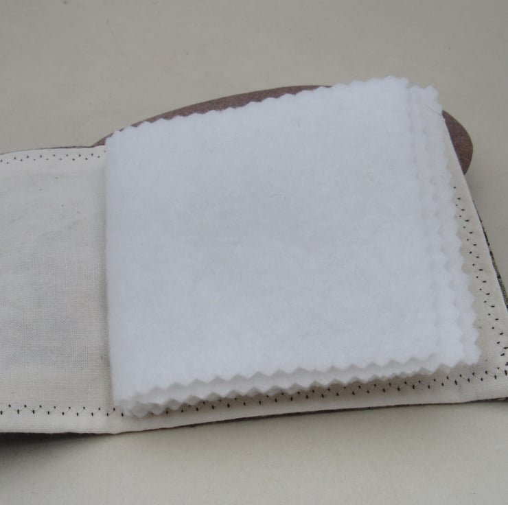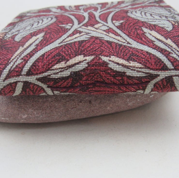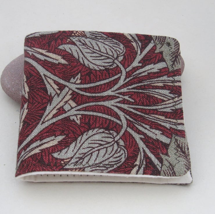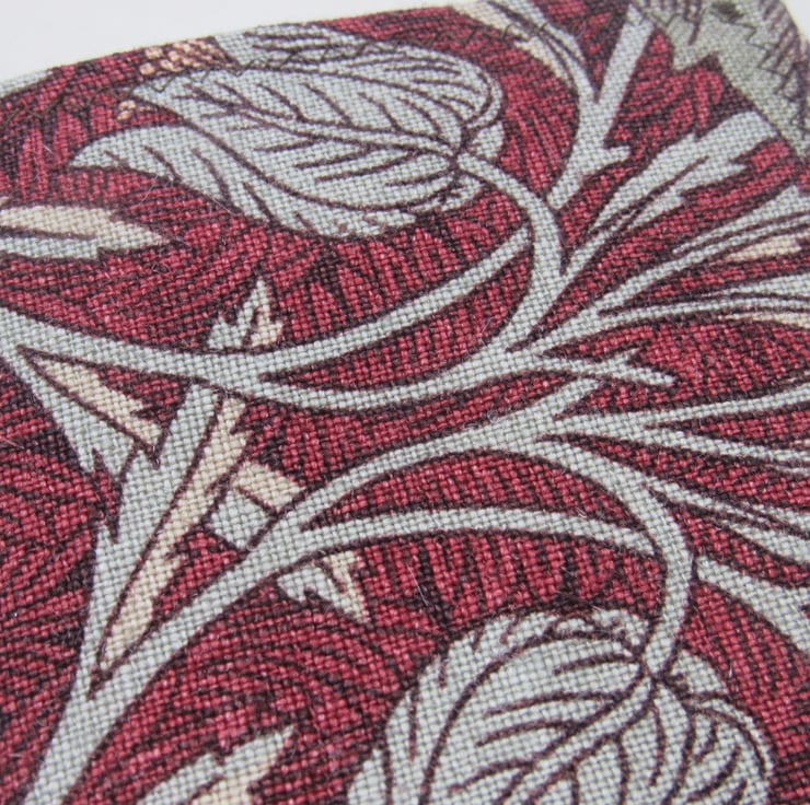 Rescued William Morris linen weave in dark red and beige, turned into a handy little needle organiser.