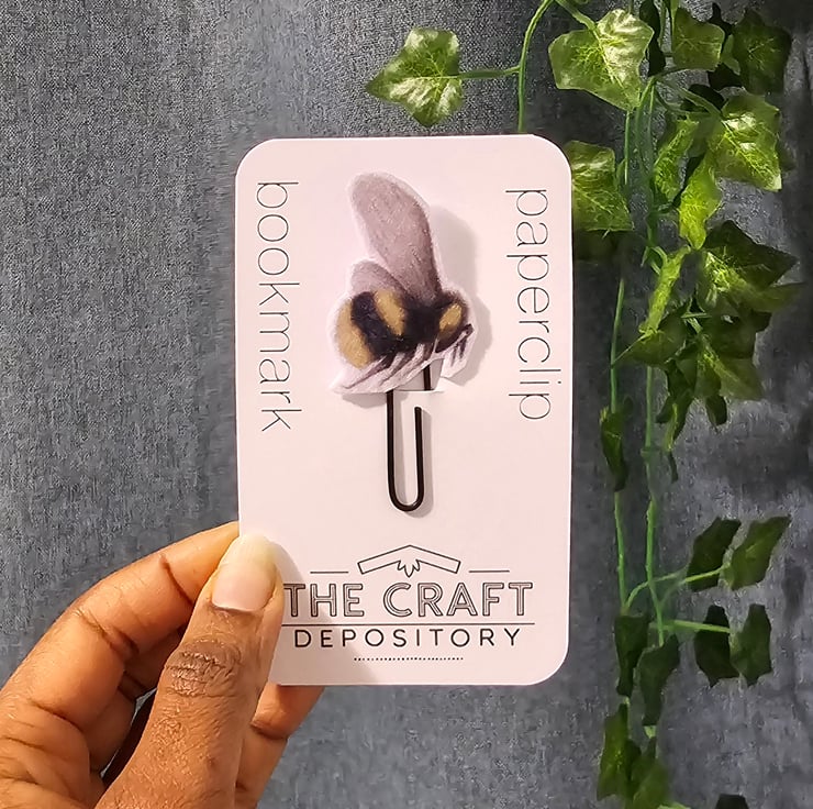 Each bookmark features a detailed watercolour insect illustration, carefully finished and attached to a sturdy 5cm paperclip for everyday use.