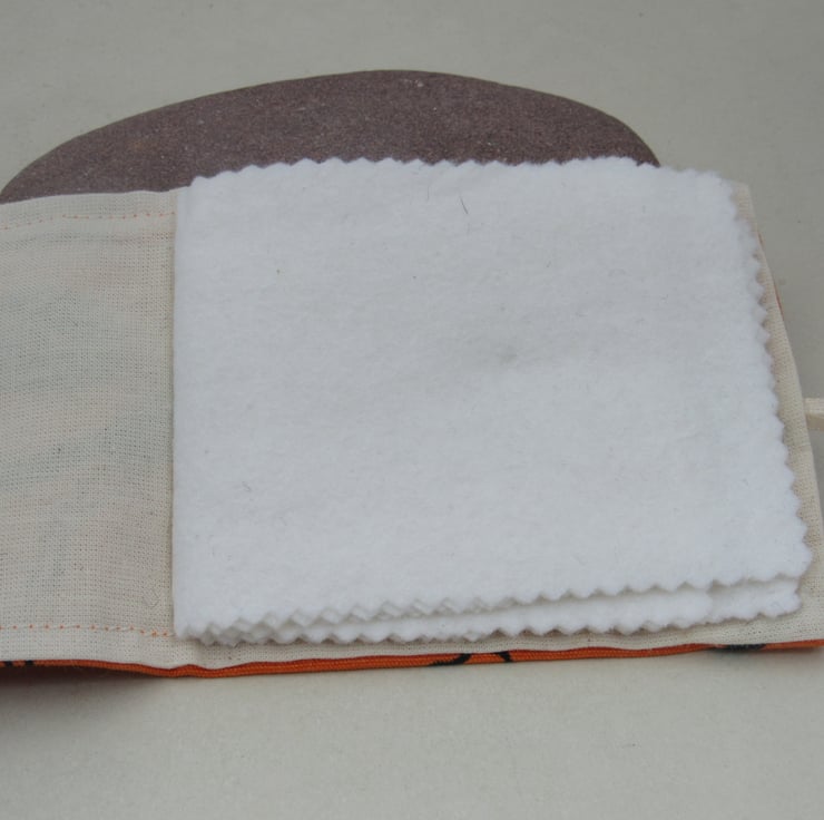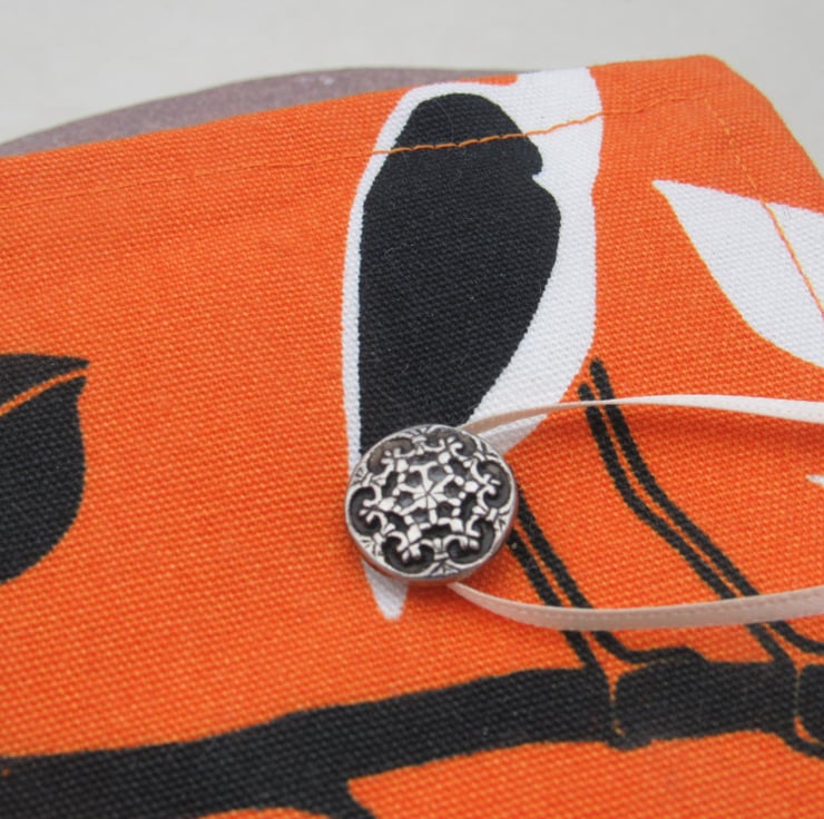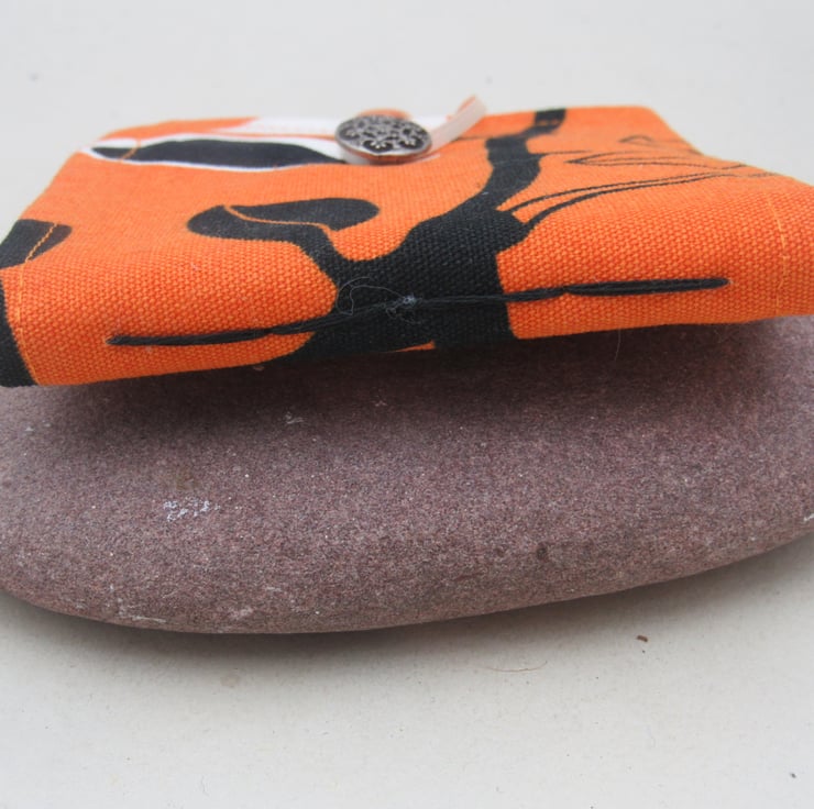 Rescued bold orange and black fabric turned into a handy little needle organiser.