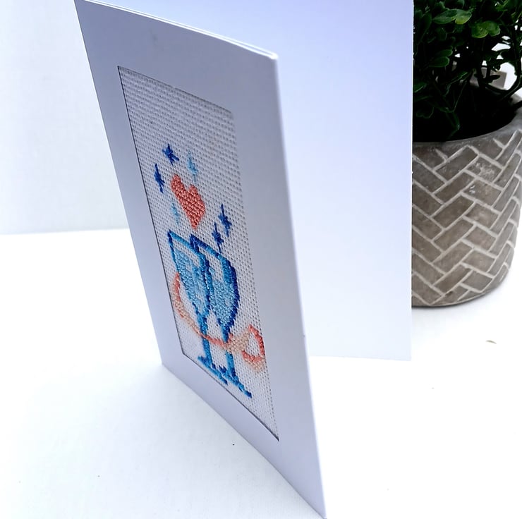 The card is crafted on high quality white cardstock and includes a matching envelope, making it ready to gift or post. Each stitch is placed with care, creating a unique keepsake that stands apart from mass produced cards.
