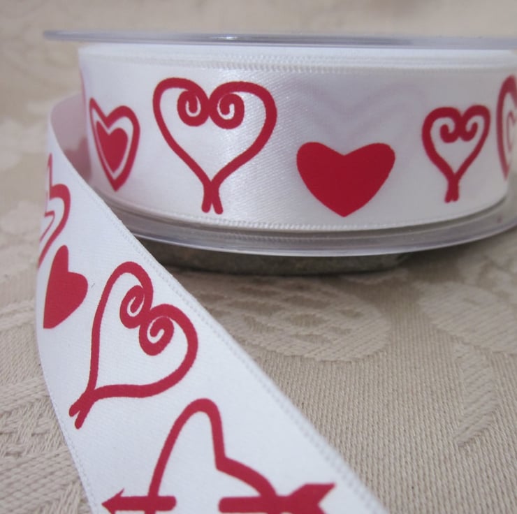 8m Red White Hearts Pattern Satin Ribbon 2.5cms