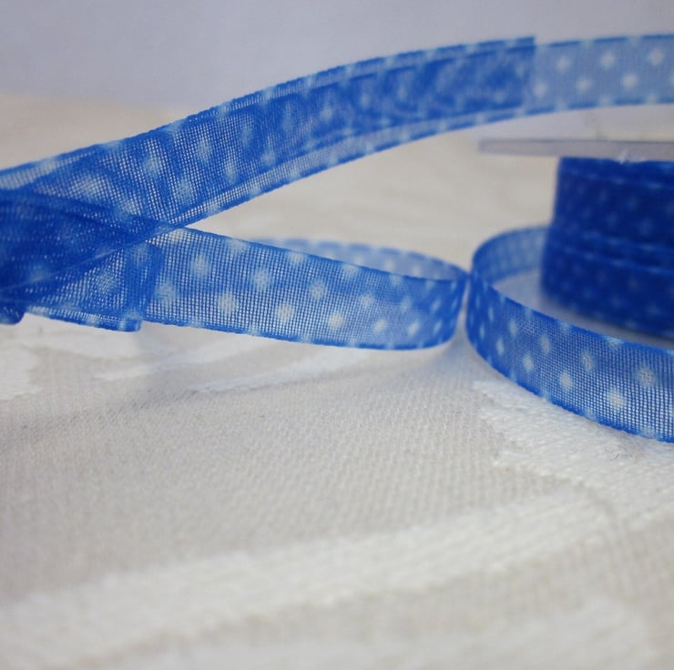 10m May Arts Narrow Polkadot Blue Gauze Ribbon
